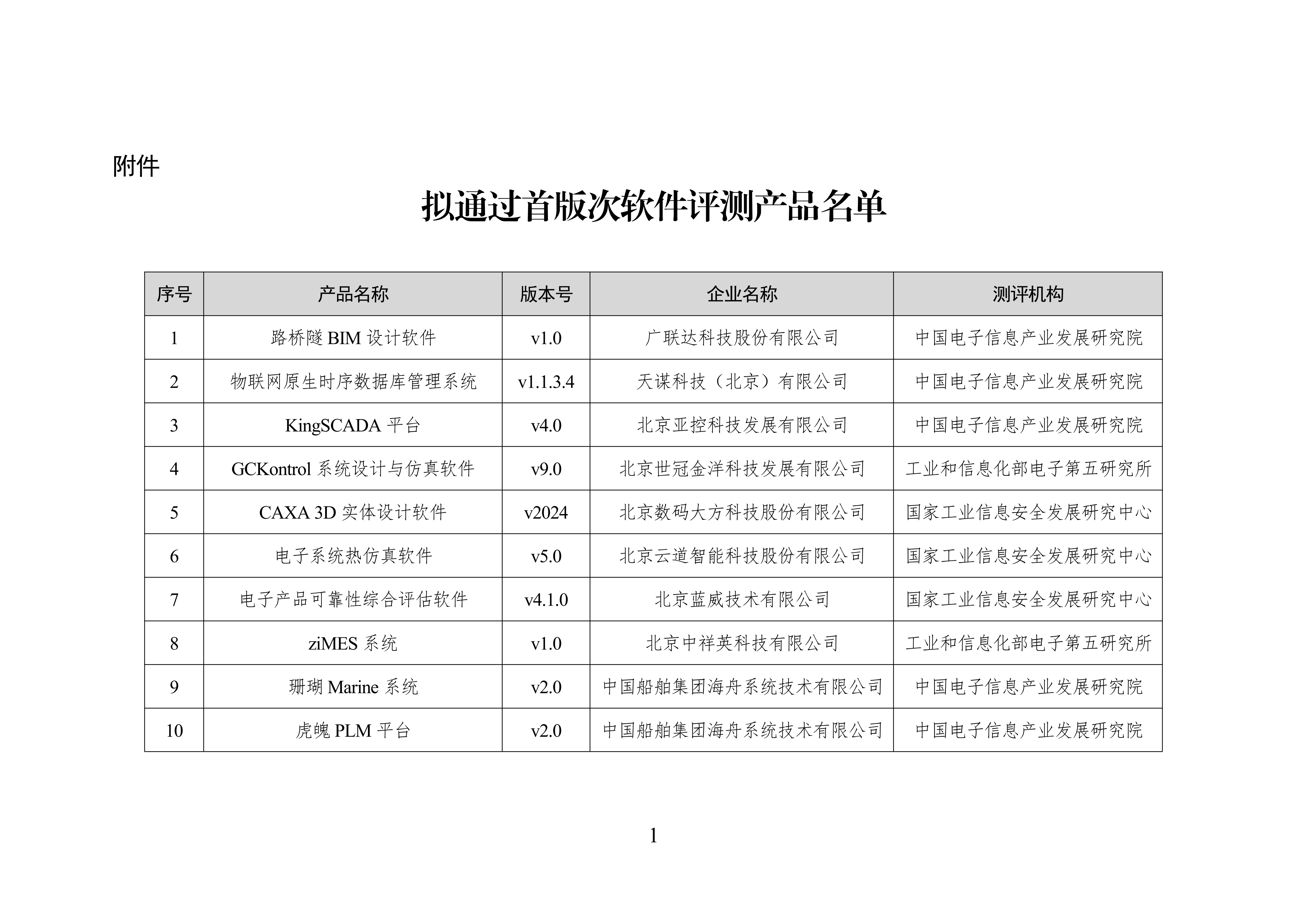 拟通过首版次软件评测产品名单公示