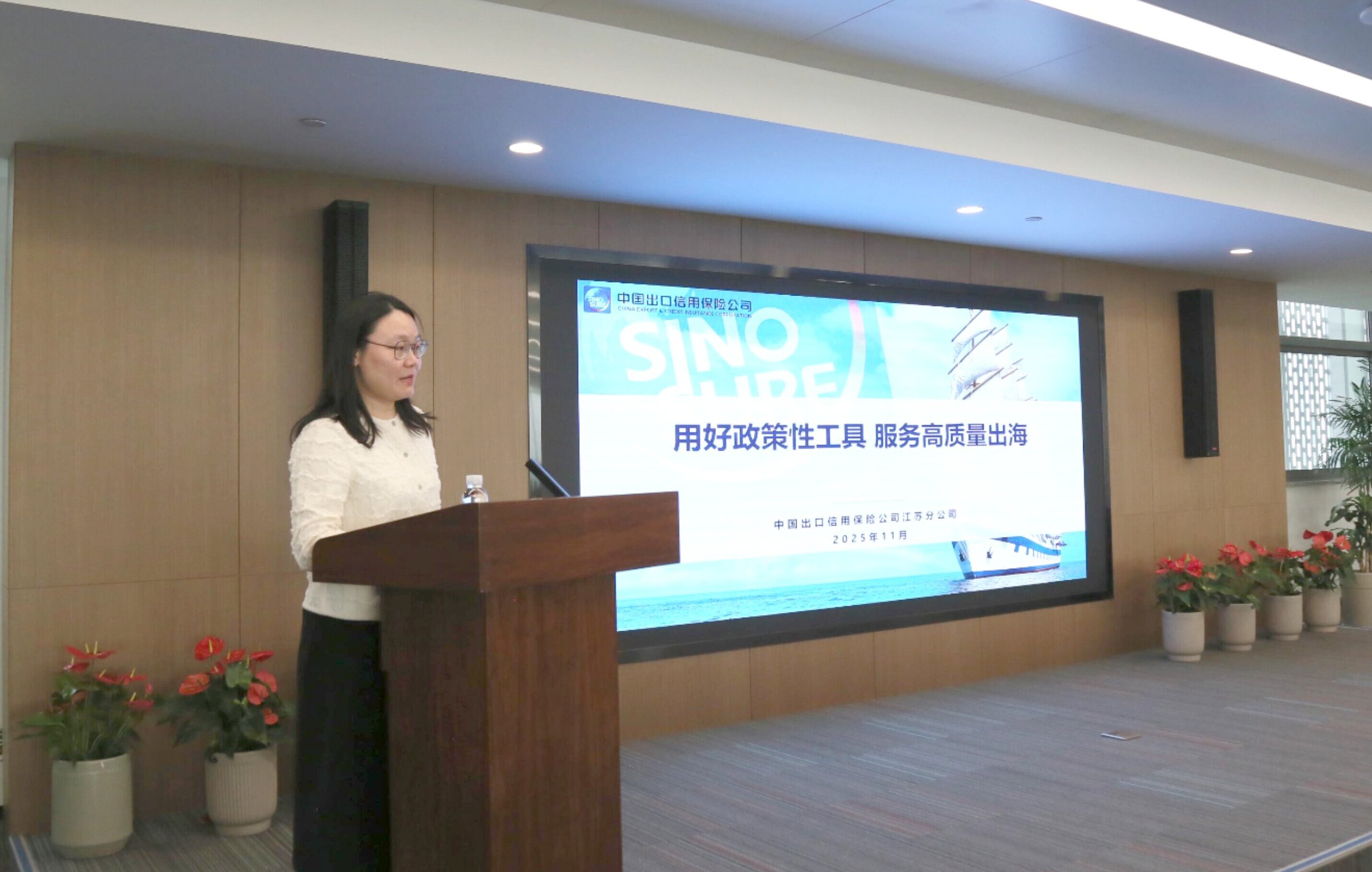主题分享环节,中国出口信用保险公司江苏分公司陆舒春聚焦“信用保险服务”,系统介绍了企业应如何用好政策性工具高质量出海,并明确了服贸企业享受的支持政策,为企业出海提供金融保障支撑。