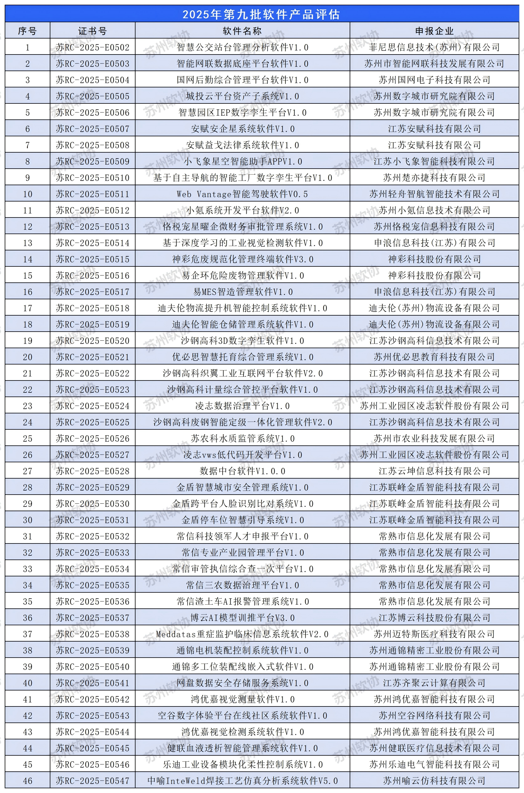 下一个:苏州市2025年度第七批软件产品变更公示名单